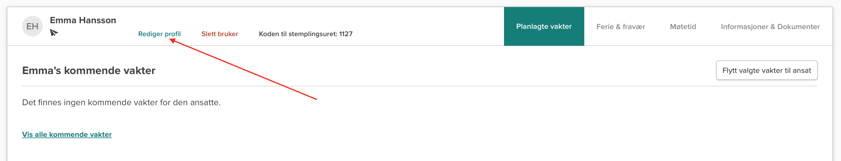 Hvis du vil aktivere en ansatt igjen før den valgte perioden er over, kan du bare gjøre det ved å redigere den ansattes profil.